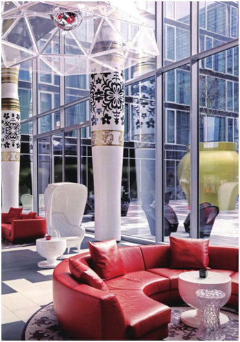 大堂設(shè)計(jì)應(yīng)遵循酒店“以人為本”的經(jīng)營理念,注重營造寬敞、華麗、輕松的氛圍,為客人帶來美好的享受。酒店形象定位、投資規(guī)模、建筑結(jié)構(gòu)等條件決定大堂的整體風(fēng)格和效果。在大堂設(shè)計(jì)中,應(yīng)采用各種設(shè)計(jì)方法圍繞概念主題營造大堂氛圍。