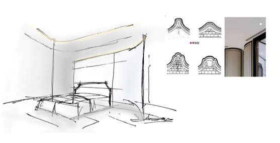 對(duì)前期所獲得資料的整理和研究后,接下來(lái)就是運(yùn)用圖式的方法將具體內(nèi)容和形式落實(shí)到具體空間中。這個(gè)階段一般是從草圖設(shè)計(jì)開始。在草圖階段,設(shè)計(jì)師就需要對(duì)室內(nèi)的功能分區(qū)、設(shè)計(jì)的形式與風(fēng)格、家具的形式與布置、裝修細(xì)節(jié)與材料等有一個(gè)總體的把控,大致確定出空間的形式、尺寸和色彩等。