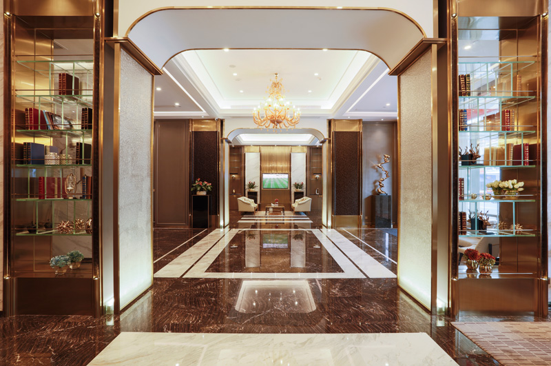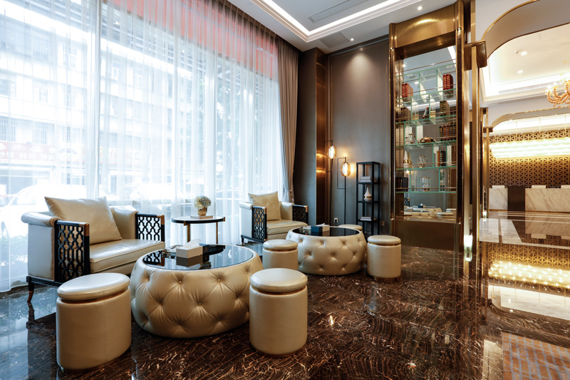 1、接待大廳寬敞、裝修豪華、光線充足。